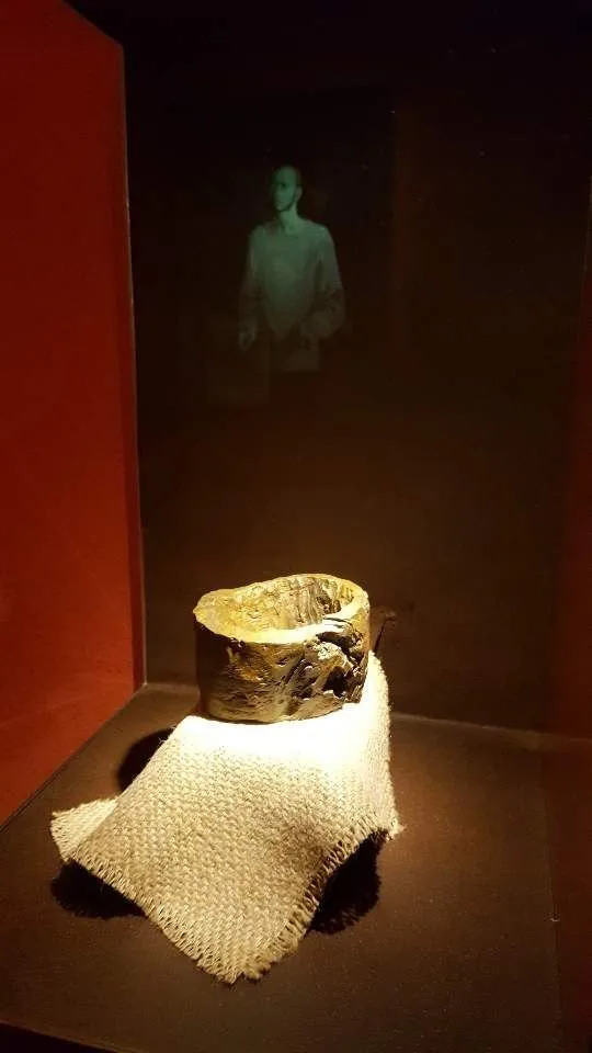 나는 이냐시오 성인이 동굴 수행을 할때 그리고 순례를 할때 지니고 다녔던 이 탁발 그릇에 엄청난 끌림이 생겼고 직접 확인해보고 싶었다. 500년 이상된 밥그릇이다. 이냐시오성인의 환영이 탁발그릇위에 나타났다. 물론 건너편의 전시된 그림이 비춘것이지만,
