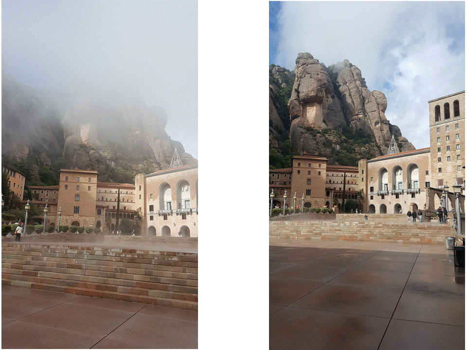 몬세라트 수도원은 운무에 의해 시시각각 변화되는 신비로운 분위기와 이를 관찰하며 감탄하는 인간의 감응으로 자연이 그대로 영성을 선물해주는 것 같다. 그래서 종교 예술이 탄생한 것도 같다. 종교의 극단적인 단어 마루 종(宗)자를 빼어내면 영성만이 남기 때문이다.