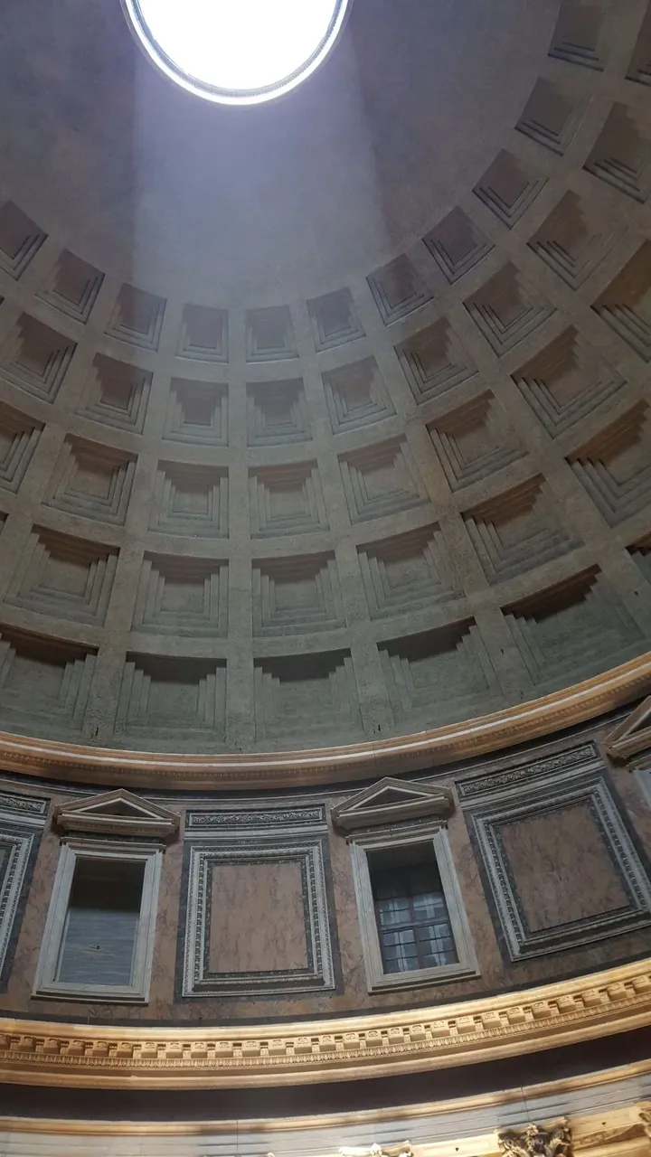동양 천문학에 28수의 개념이 있다. 동양별자리 3원 28수 (이십팔수 二十八宿) , 천상열차분야지도 별이 보이는 장소를 28개의 구역으로 나누고 별이 비추어주는 빛의 상태를 관찰하여 인간 개개인 혹은 사회의 운명을 예측하였다. 이것은 관계의 학문이다. 빛과 빛의 덩어리(인간 및 사회)가 마주하여 새롭게 일어나는 인연因緣/원인과 조건/dependent arising을 읽어내는 것이다. 궁금해서 판테온 신전의 돔 중앙 빛의 구멍 둘레에 조성된 함몰 판의 개수를 세어보았다. 28조각이다. 이건 우연이 아니다. 인간이 관찰하여 해석하는 빛(마음)의 원형이 어찌 다를 수 있겠는가? 빛이 마음이고 마음의 모습이 저마다 다르지만 인식하는 마음은 빛의 원형에서 되비쳐졌기 때문이다. 그 빛의 원형은 신(神)일 것이고 다양한 모습을 드러내는 또 하나의 해석하는 마음일 뿐이다. 그러니 동양이나 서양의 해석 틀이 다를 바가 없는 것이다. 이 28개의 장소에 태양이 움직이면서 비추어주고 있다. 고대 로마인들은 태양이 비추어주는 빛과 그 장소를 보고 매 순간순간 경건하게 살아갈 것을 지향했을지도, 그리고 삶의 의미도 성찰했을지도, 그러나 로마는 탐욕의 정복자였고 수백 년 후 아이러니하게도 그들이 정복한 나라에서 발생한 종교(그리스도교)의 추종자가 되었다. 그리고 다시 그 종교는 세속화되어 지나친 화려함의 흔적을 판테온 신전이라는 바로 이곳 신성한 장소에 다시 그리스도교의 문화로 새겨 놓았다. 영적 정신과 인간의 번뇌(탐욕/분노/어리석음)는 차이가 있지만 하나의 마음(빛)에서 비롯되었다. 종교의 세속화는 바로 그 마음에서 일어나는 빛과 어두움의 주도권이 뒤바뀌는 것일 뿐이다. 그러나 빛의 씨앗은 언제나 없어지지 않기 때문에 종교의 순기능 또한 사라지지 않을 것이다.