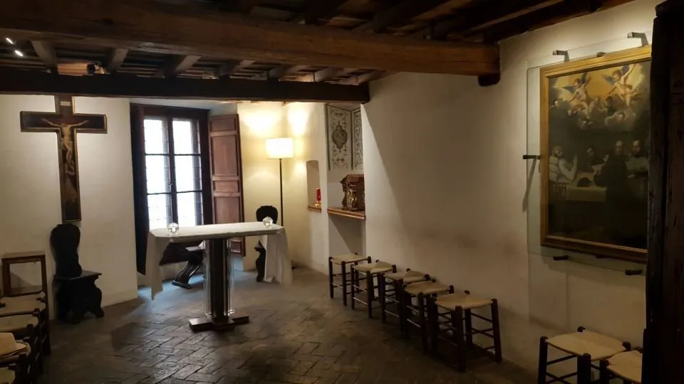 성 이냐시오 성당과 예수회 본원에서 이냐시오가 업무를 보던 사무실과 침실을 둘러보았다. 의자가 빈 곳이 그가 마지막 숨을 거둔 장소라고 한다. 여기가 침실 겸 묵상하던 곳이었다고 한다.