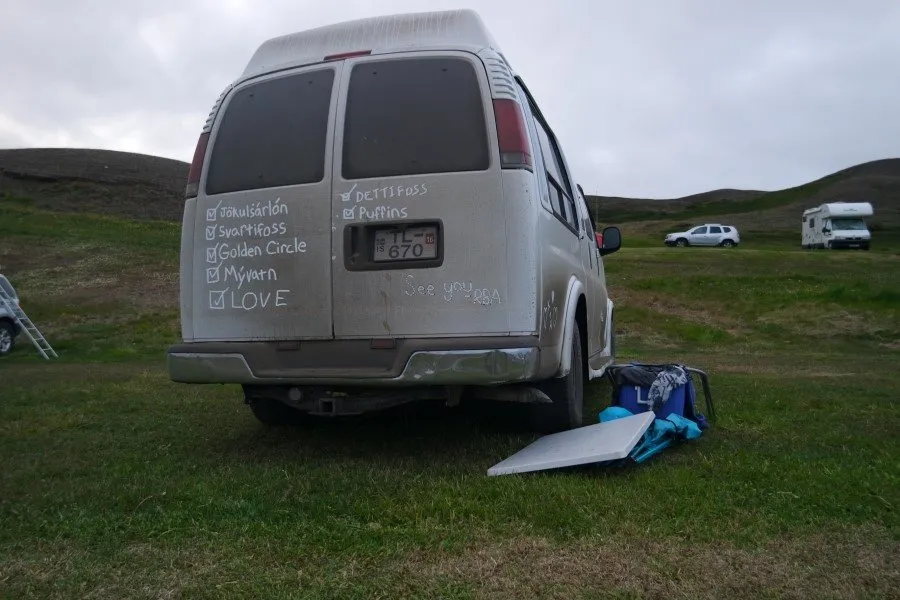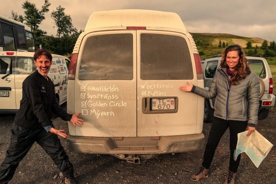 역시나 유쾌한 그들!! 아이슬란드 버킷리스트를 흙먼지로 뒤덮힌 차 뒷편에 손으로 쓱쓱 써서 만들었습니다. ㅎㅎ 가고 싶은 곳, 보아야 할 것들을 체크했네요.