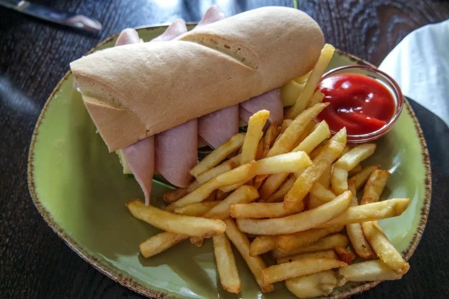 케빈은 제가 저예산으로 여행하는 가난한 거지 방랑자임을 알아보고는 사준다고 했는데, 제가 차도 태워줬는데 도움만 받을 수는 없다며 제가 한 턱 쏠 수는 없고, 제 것은 제가 계산을 하겠다고 했어요. ㅎㅎㅎ 그래도 레스토랑에 오기 전에 감자튀김을 먹고 싶다고 얘기하던 중이었는데 이렇게 먹게 되네요.