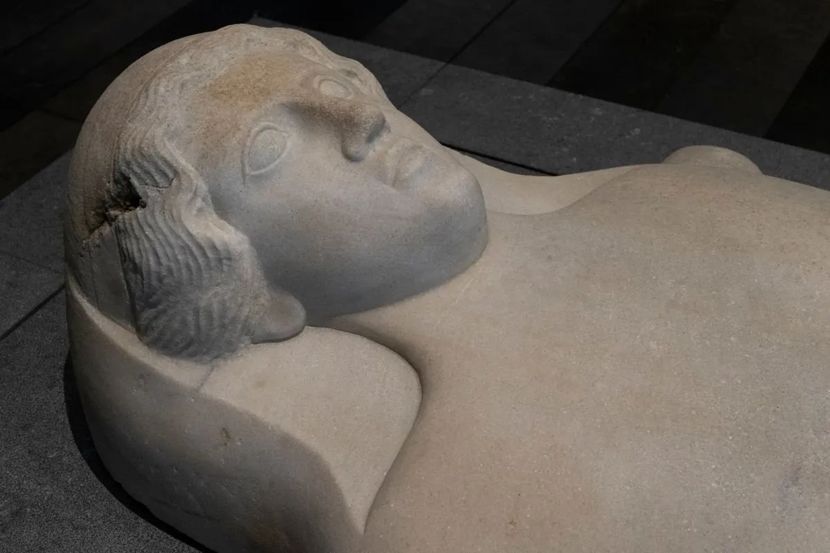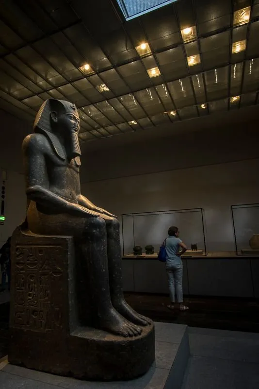 이 석상의 뒤로 보이는 어두운 방은 이집트 문명의 유물 및 미라 등이 전시된 곳으로, 다른 공간에 비해 어둡고 서늘한 편이다.