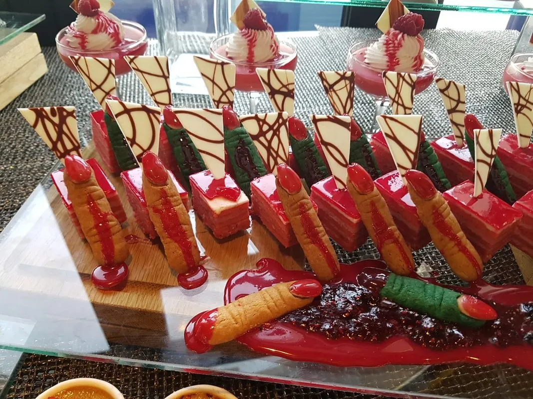 아래는 할로윈 부페에서 볼 수 있는 음식입니다. 장식이 필요하다 보니 주요리 보다는 디저트 위주로 꾸며놓습니다.