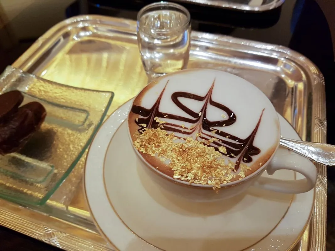 커피 맛이 특별하게 뛰어난 것은 아니지만, 섹스 앤 더시티 아부다비 편에서 나왔기도 하고, 금과 대리석으로 장식된 호텔에서 마시는 금 커피라는 럭셔리한 이미지 때문인지 많은 여행객이 꼭 한 번은 들리는 곳이다. 금 커피 이외에도 낙타 우유로 만든 카페라테, 금박으로 장식된 아이스크림, 금박, 은박으로 장식된 케이크를 즐길 수 있다.