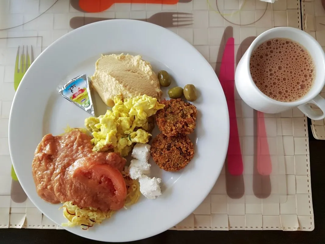 시골 마을에 위치한 숙소기도 하고, 조식을 포함한 숙박비 또한 인당 3만 원 정도였기에 조식은 기대하지 않았다. 그런데 의외로 허머스, 팔라펠, 페타치즈, 스크램블드에그 등 내가 좋아하는 음식이 가득했고, 따뜻하고 맛있는 짜이티까지 마실 수 있었다.