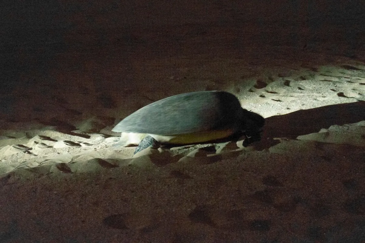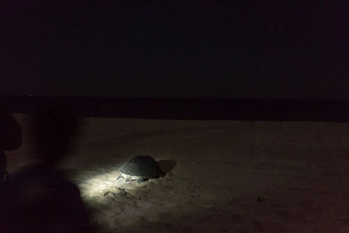드디어 산란 장소에 도착한 우리는 팀 별로 모여 가이드의 설명을 듣기 시작했다. 우리는 겨울인 2월에 방문했기에 알을 낳고 돌아가는 어미 거북을 볼 수 있으며, 만약 7월~9월에 올 경우, 부화한 새끼 거북이가 바다로 들어가는 장면도 볼 수 있다고 한다. 하지만 그 시기에는 바다로 향하는 새끼 거북을 노리는 새들도 함께 모인다고 한다.