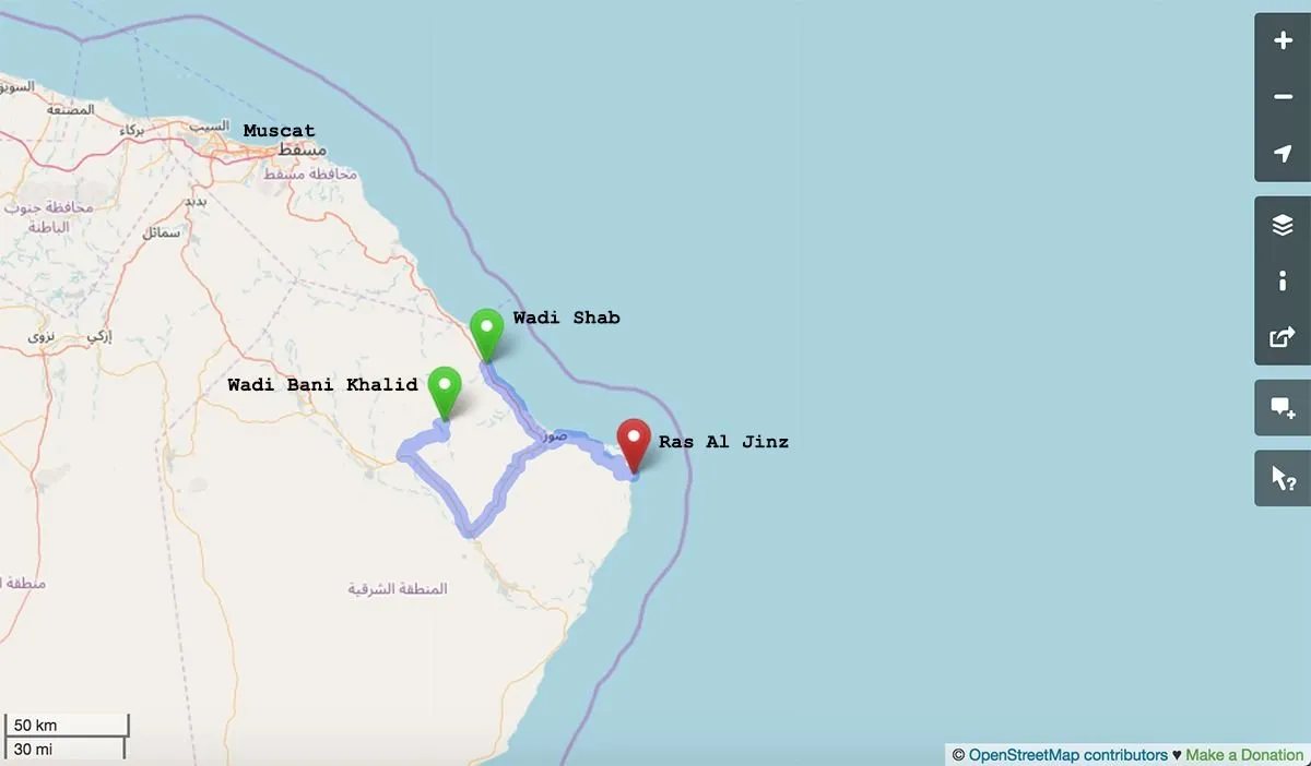 와디 바니 칼리드에서 출발한 우리는 바다거북 보호구역이 있는 라스 알 진즈로 향했다.