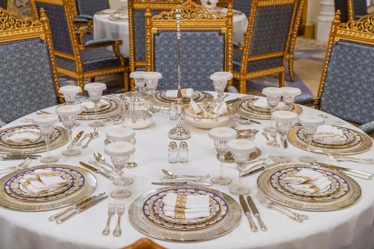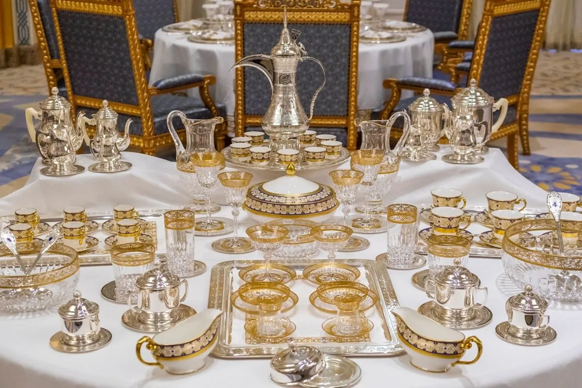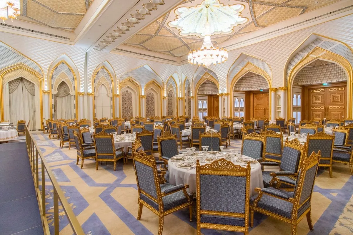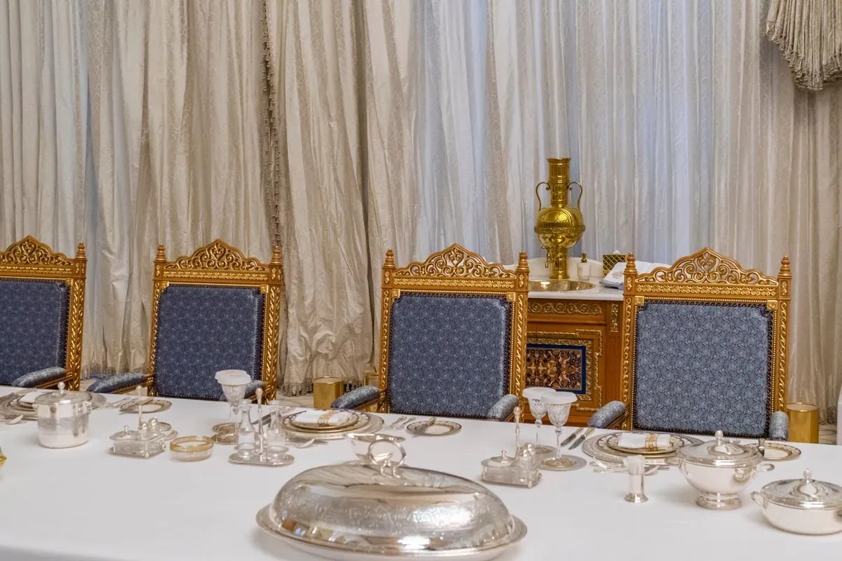 이곳 연회장은 각국의 손님을 대접해야 하기에 베두인 전통 식사법이 아닌 높은 식탁과 의자, 나이프와 스푼, 포크를 비치해 놓았다. 하지만, 손으로 음식을 먹던 그 전통을 기리기 위해 좌석의 뒤편에는 손을 씻을 수 있는 장소를 만들어 놓았다.