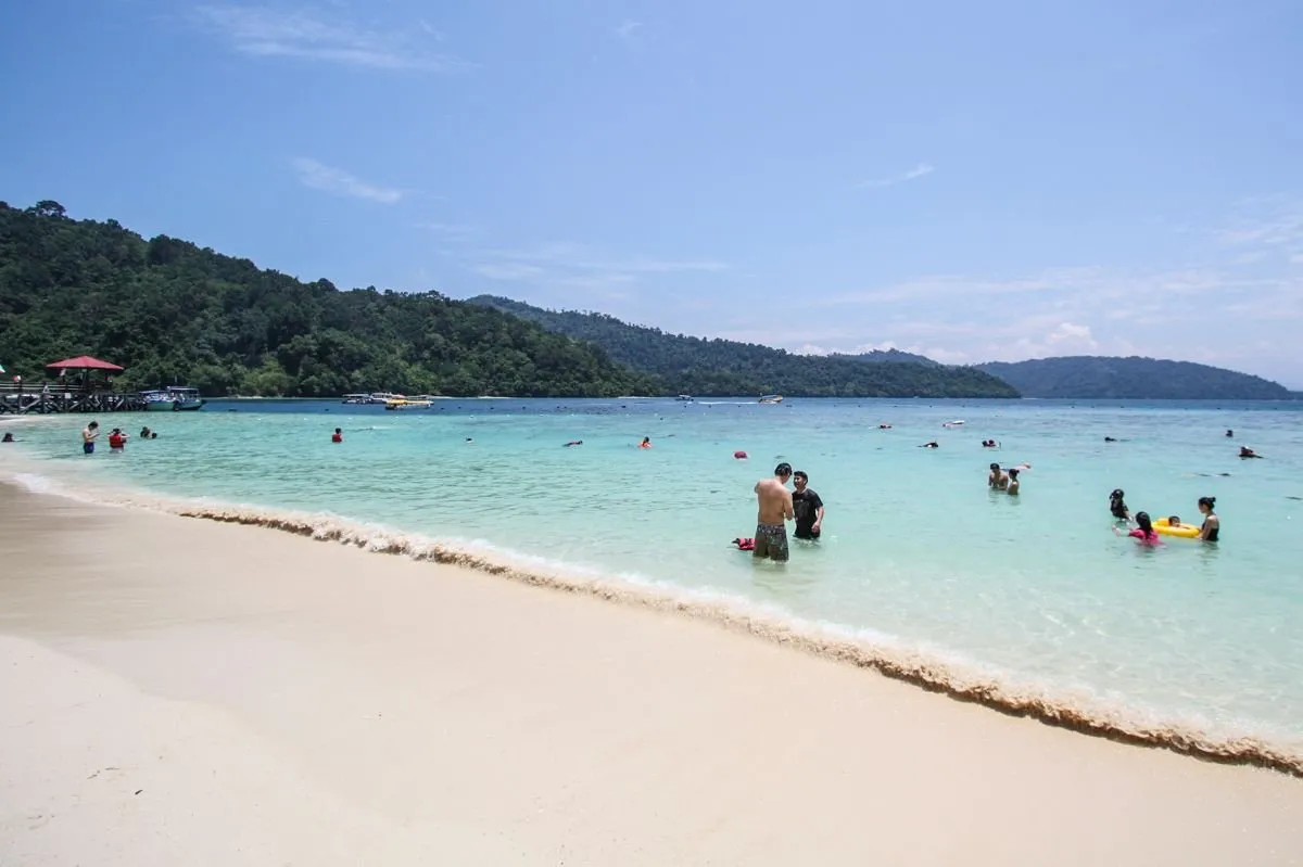 버스가 종착지에 도착한 이후에는 다시 만타나니 섬까지 배를 타고 이동했다. 마을에서 배를 탈 때만 해도 예쁜 바다가 아닌 흙탕물이 가득한 바다를 헤쳐 나갔기에 혹시 속은 게 아닌가 하는 생각이 들었지만, 이내 코타키나발루에서는 만나지 못했던 투명한 바다에 도착했다.