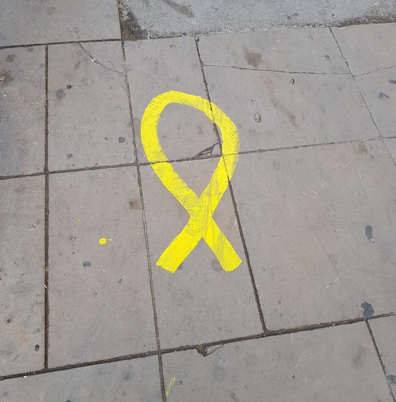 우리는 세월호가 생각나는 리본이지만 이 곳에서는 까탈루냐 독립을 희망하는 상징입니다. 이 곳 바닥에 그려진 노란 리본.