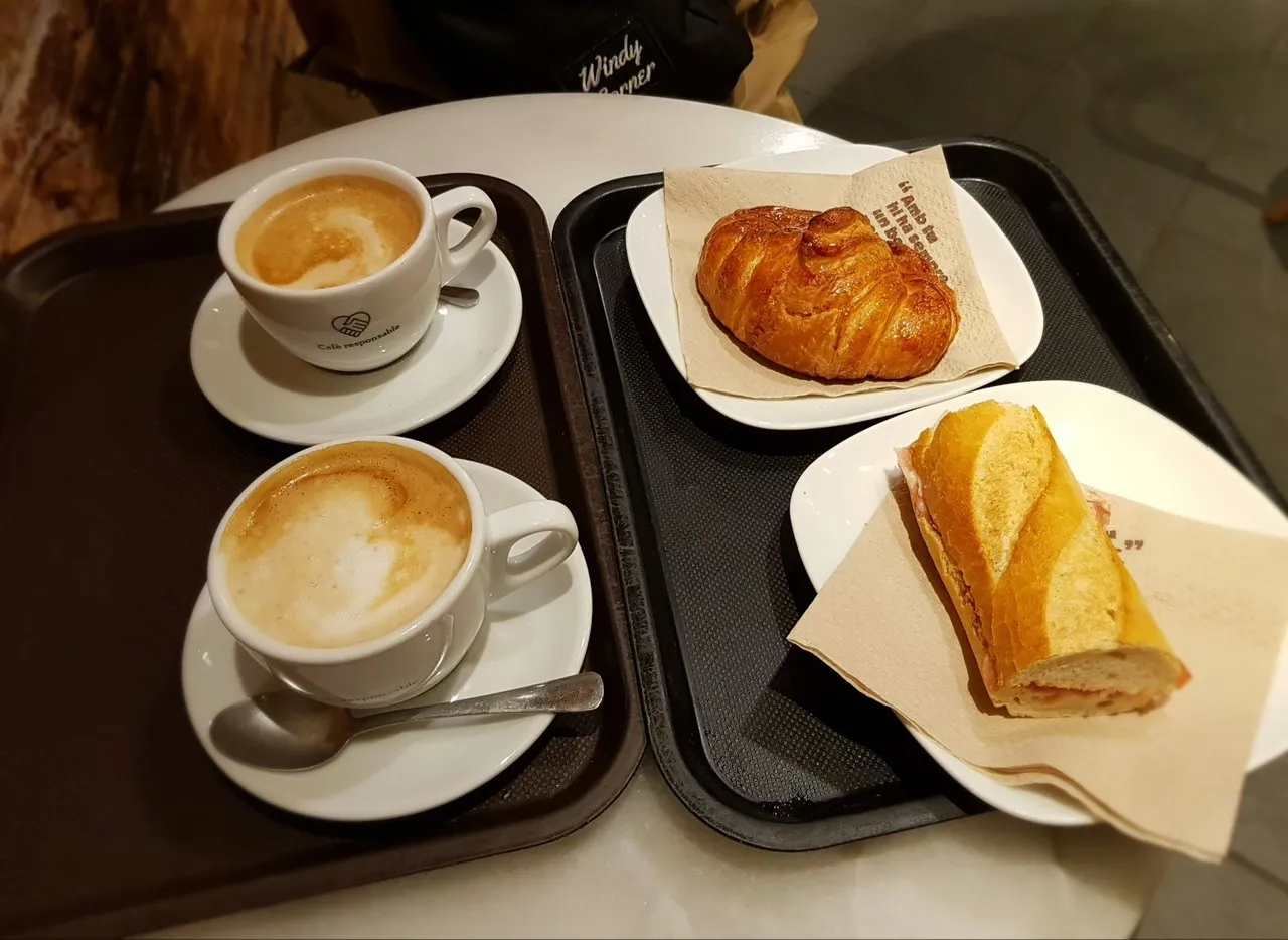 샌드위치+커피 €2.5 (약 ₩3,250)