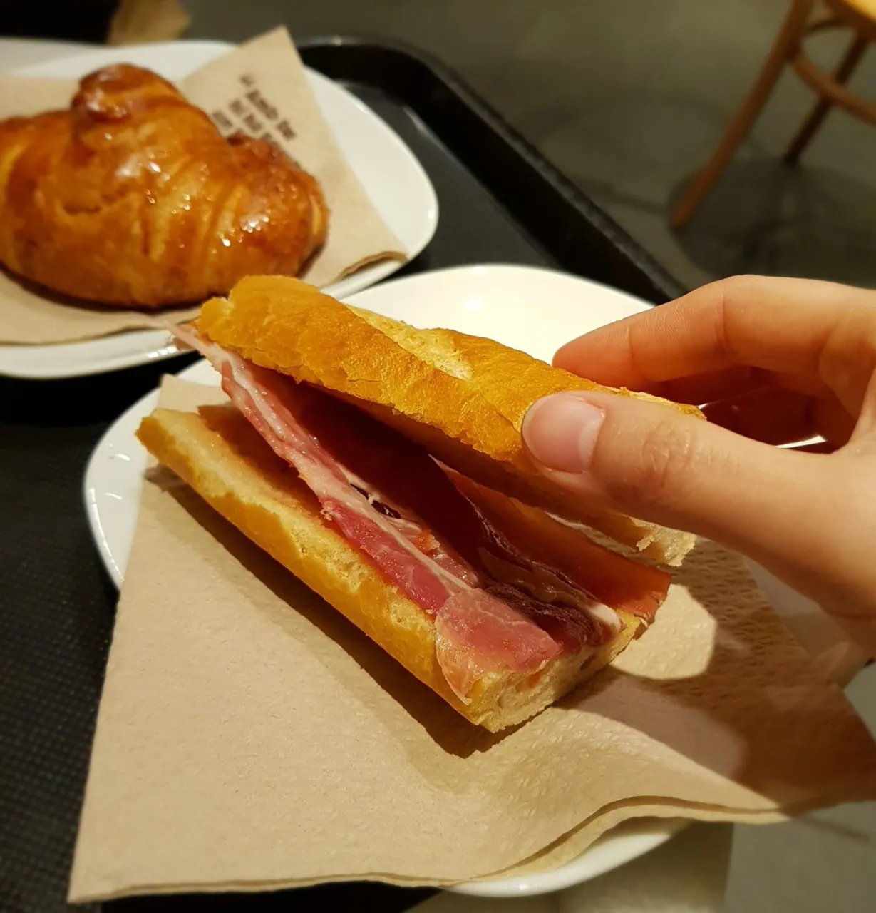 샌드위치는 하몽으로 골랐습니다. 스페인이 하몽 유명하자나요^^ 이 날 처음 먹어보았던~ ㅋㅋ 단백하고 짭짤하니 뭐 든것도 없는데 끝맛은 고소하고 맛있어요. 매력있더라구요.