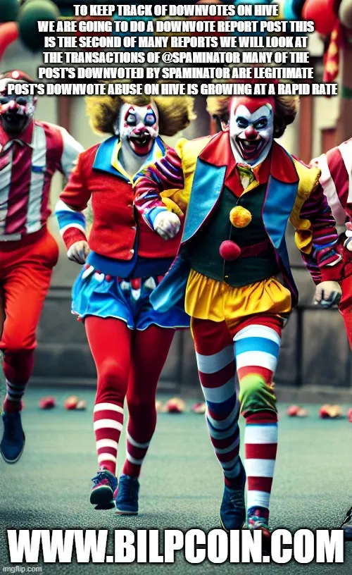 To keep track of downvotes on Hive we are going to do a downvote report post this is the second of many reports we will look at the transactions of @spaminator many of the post's downvoted by spaminator are legitimate post's downvote abuse on Hive is growing at a rapid rate