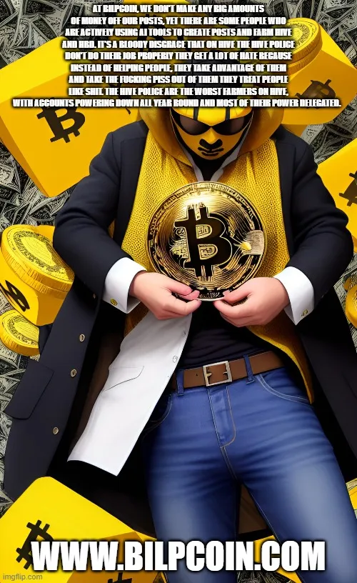 At Bilpcoin, we don't make any big amounts of money off our posts, yet there are some people who are actively using AI tools to create posts and farm Hive and HBD. It's a bloody disgrace that on Hive the Hive Police don't do their job properly they get a lot of hate because instead of helping people, they take advantage of them and take the fucking piss out of them they treat people like shit. The Hive Police are the worst farmers on Hive, with accounts powering down all year round and most of their power delegated.