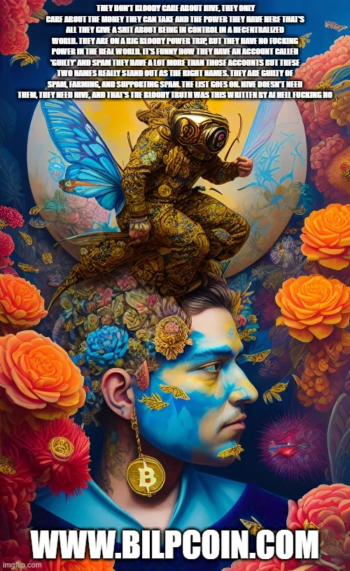 They don't bloody care about Hive, they only care about the money they can take and the power they have here that's all they give a shit about being in control in a decentralized world. They are on a big bloody power trip, but they have no fucking power in the real world. It's funny how they have an account called 'guilty' and spam they have a lot more than those accounts but these two names really stand out as the right names. They are guilty of spam, farming, and supporting spam. The list goes on. Hive doesn't need them, they need Hive, and that's the bloody truth was this written by AI hell fucking NO.