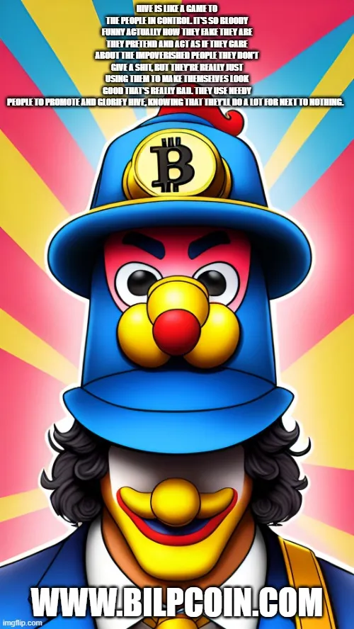 Hive is like a game to the people in control. It's so bloody funny actually how they fake they are they pretend and act as if they care about the impoverished people they don't give a shit, but they're really just using them to make themselves look good that's really bad. They use needy people to promote and glorify Hive, knowing that they'll do a lot for next to nothing.