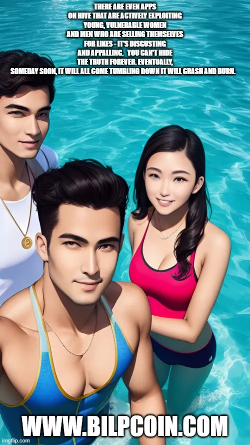 There are even apps on Hive that are actively exploiting young, vulnerable women and men who are selling themselves for likes - it's disgusting and appalling. You can't hide the truth forever. Eventually, someday soon, it will all come tumbling down it will crash and burn.