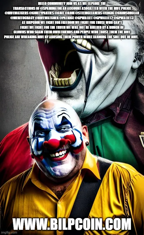 At Bilpcoin we fight for freedom we fight for those who can't fight we fight for the truth we will not be bullied by a bunch of clowns who scam their own friends and people who trust them the Hive Police are wreaking Hive by abusing their power while farming the shit out of Hive.