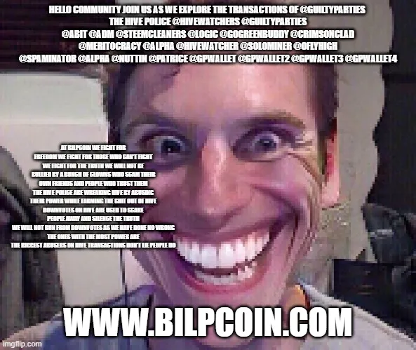 At Bilpcoin we fight for freedom we fight for those who can't fight we fight for the truth we will not be bullied by a bunch of clowns who scam their own friends and people who trust them the Hive Police are wreaking Hive by abusing their power while farming the shit out of Hive