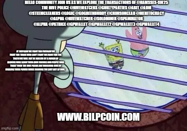 At Bilpcoin we fight for freedom we fight for those who can't fight we fight for the truth we will not be bullied by a bunch of clowns who scam their own friends and people who trust them the Hive Police are wreaking Hive by abusing their power while farming the shit out of Hive.