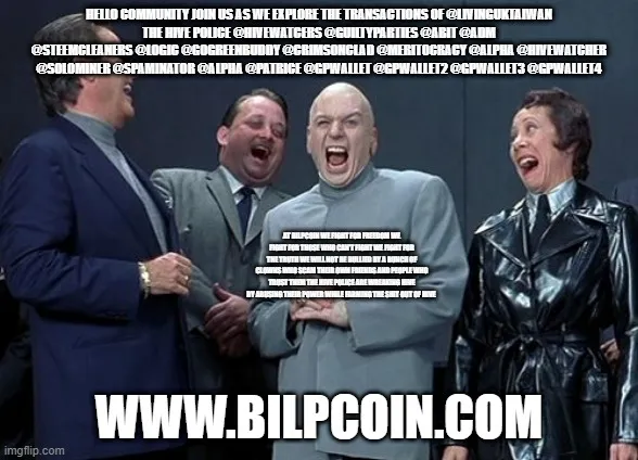 At Bilpcoin we fight for freedom we fight for those who can't fight we fight for the truth we will not be bullied by a bunch of clowns who scam their own friends and people who trust them the Hive Police are wreaking Hive by abusing their power while farming the shit out of Hive