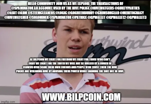 At Bilpcoin we fight for freedom we fight for those who can't fight we fight for the truth we will not be bullied by a bunch of clowns who scam their own friends and people who trust them the Hive Police are wreaking Hive by abusing their power while farming the shit out of Hive.