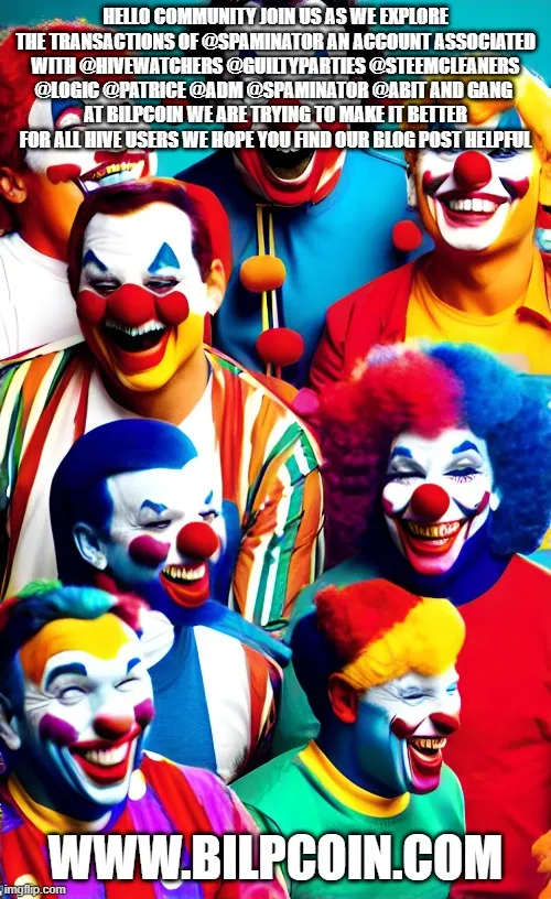 Hello community join us as we explore the transactions of @spaminator an account associated with @hivewatchers @guiltyparties @steemcleaners @logic @patrice @adm @spaminator @abit and gang