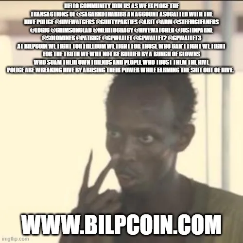 At Bilpcoin we fight for freedom we fight for those who can't fight we fight for the truth we will not be bullied by a bunch of clowns who scam their own friends and people who trust them the Hive Police are wreaking Hive by abusing their power while farming the shit out of Hive