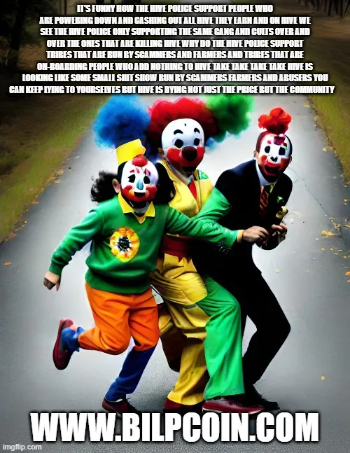 It's funny how the Hive Police support people who are powering down and cashing out all Hive they earn and on Hive we see the Hive Police only supporting the same gang and cults over and over the ones that are killing Hive why do the Hive Police support tribes that are run by scammers and farmers and tribes that are on-boarding people who add nothing to Hive take take take take Hive is looking like some small shit show run by scammers farmers and abusers you can keep lying to yourselves but Hive is dying not just the price but the community.