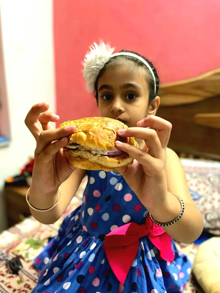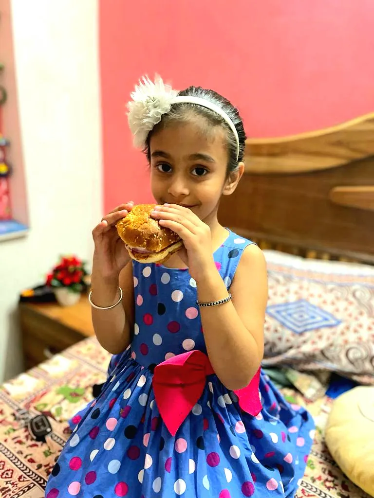 Sharing some pic of her clicked just before the vaccination and with her favorite burgers.......
