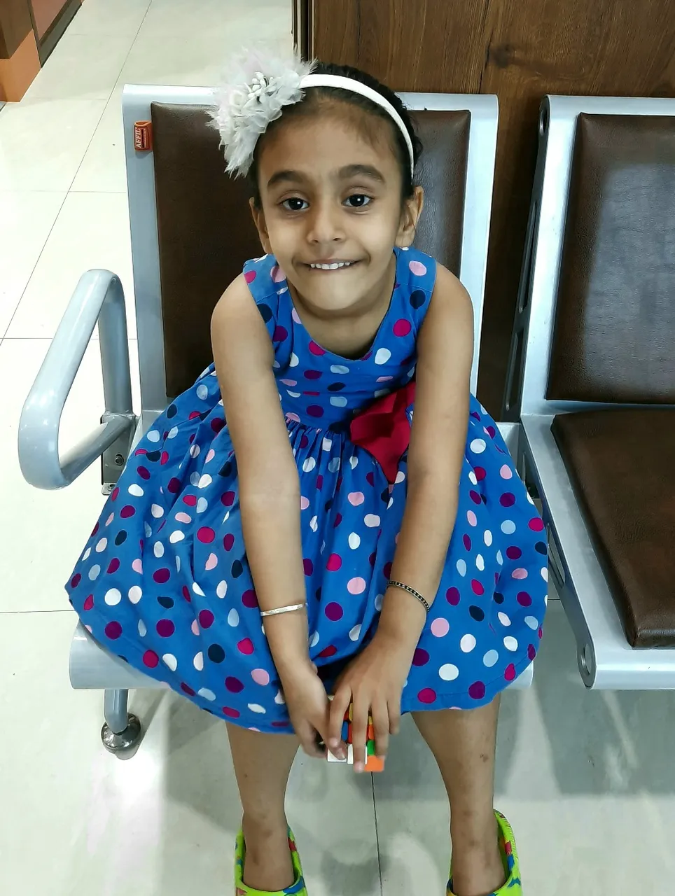 She was ok when we reached the hospital for vaccination, not afraid at all. We meet doctor and shown the vaccination card as we were already kmew two vaccination were pending. We made the paymemt and nurses ask us to wait. Now days those vaccination are too much costly. After few minutes nurse called us I took Gurseerat along with me to the cabin. Still she was ok and playing with her cube. The moment Doctor insert the needle in her skin, she start crying and it was expected. She was normal within 5 minutes.