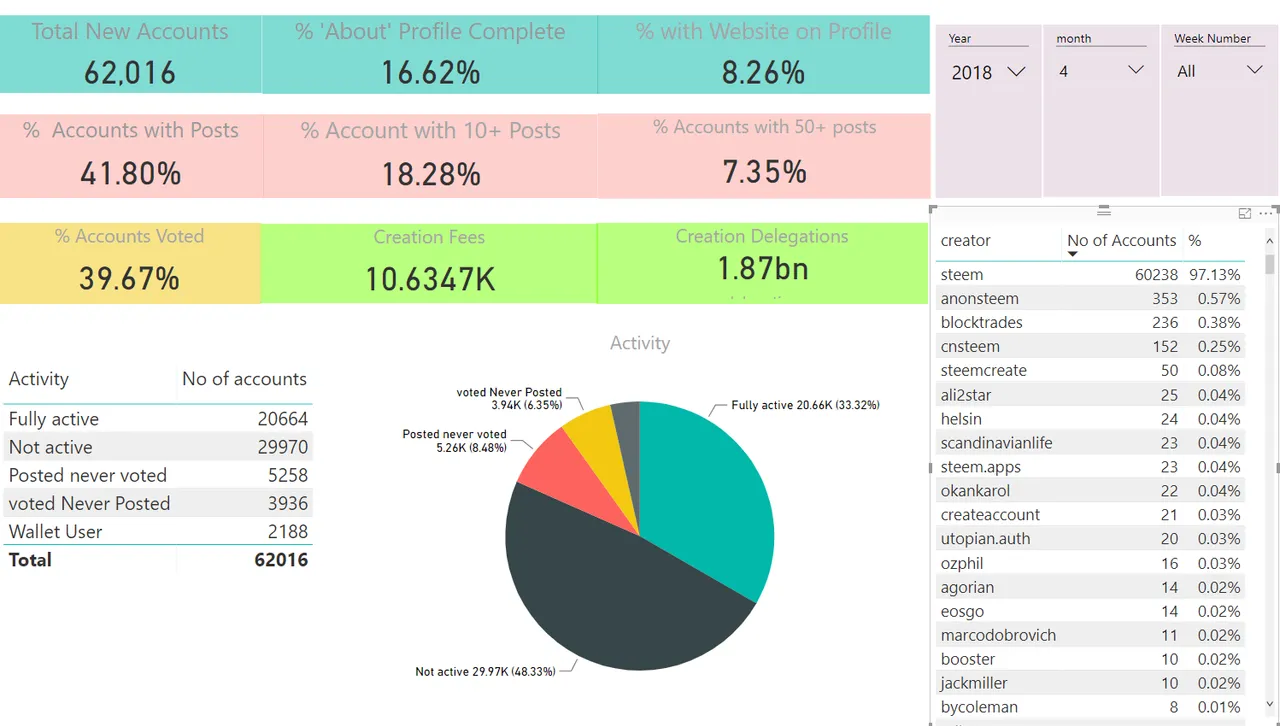 • Establish what % of accounts have posts and voted and are just wallet holders.