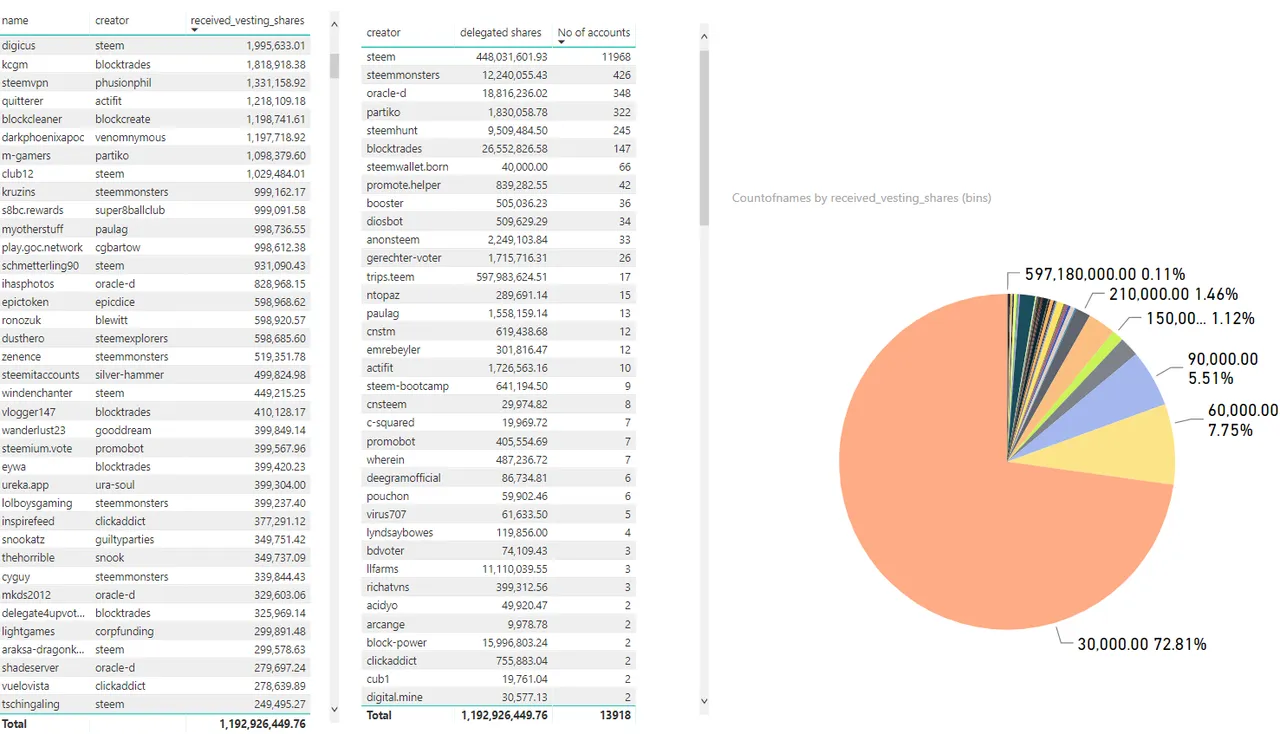 Of this 75% of account that received delegation, just over 72% received 30K Vests which we can see in the pie chart below. And the balance received more.
