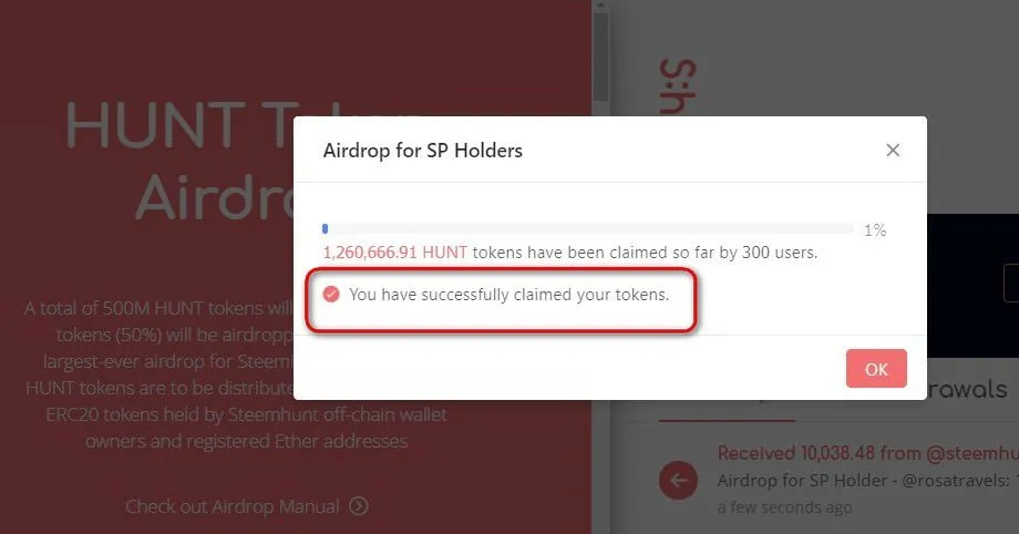I belong to the first 300 Steemians who had claimed the HUNT tokens this morning. I actually did it too fast.