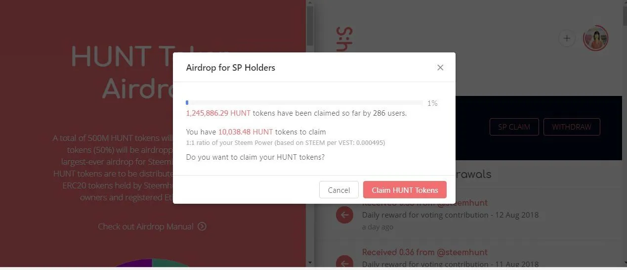 If you want to get more HUNT tokens in this airdrop, you can claim it at a later date where you accumulate more SP in the next few days. Your SP will bound to increase, so waiting for a higher SP is also a path to go to maximize the return of the airdrop HUNT tokens.
