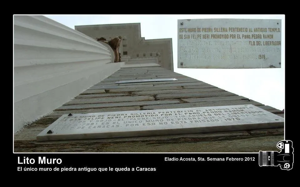 Este muro de “Piedra Sillería” perteneció al antiguo templo de San Felipe Neri. Promovido por el Pbro. Pedro Ramón Palacios y Sojo - El "Padre Sojo" - Tío Abuelo del Libertador (1733 - 1799).