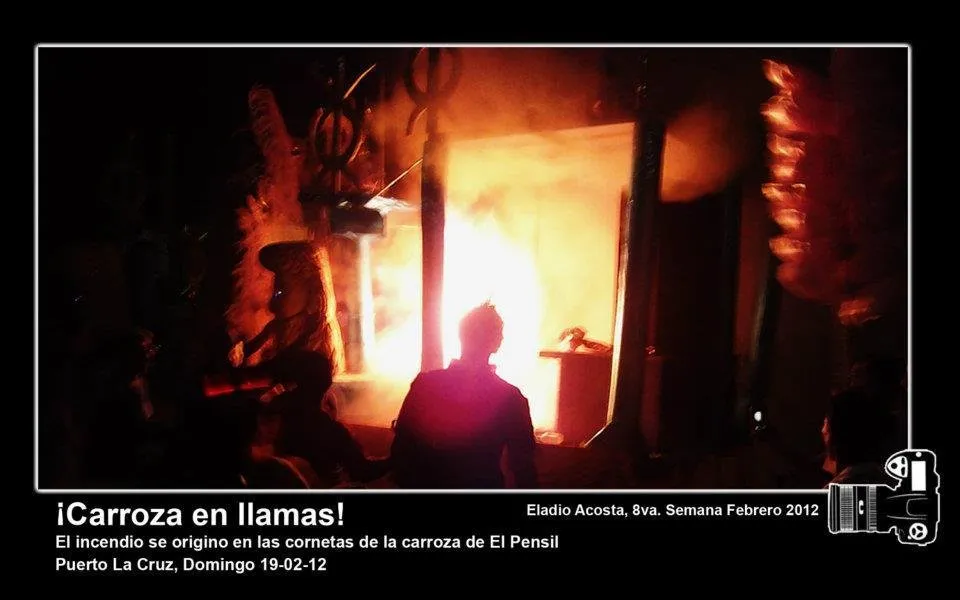 Me encontraba caminando el domingo 19 de febrero del 2012 por la avenida Municipal de Puerto La Cruz durante el desfile de los carnavales en dirección a mi área de trabajo (Editores Orientales) cuando observo como una de las cornetas grandes montadas en un camión empieza a prenderse en llamas. Enseguida el camión es detenido, el sistema generador de electricidad es apagado, se bajan los músicos y las bailarinas, la acción inmediata es el uso de un extinguidor de incendio.