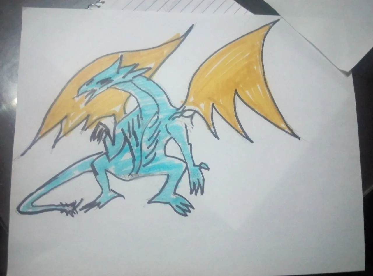 Y me sumo a la fiesta de crear un dragón con #winyoureverdragon, en este caso realice un dragón a mano alzada, lo cual lo dibuje con un color amarillo y azul. Quiero resaltar que no soy muy bueno en las artes, pero si me destaco en las ideas de los personajes.